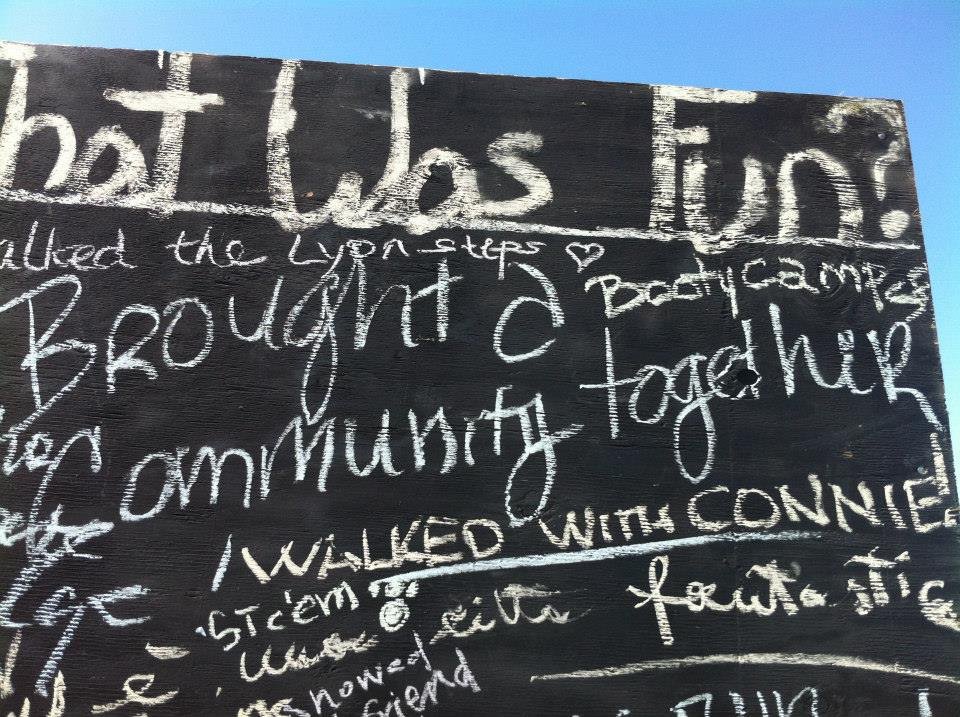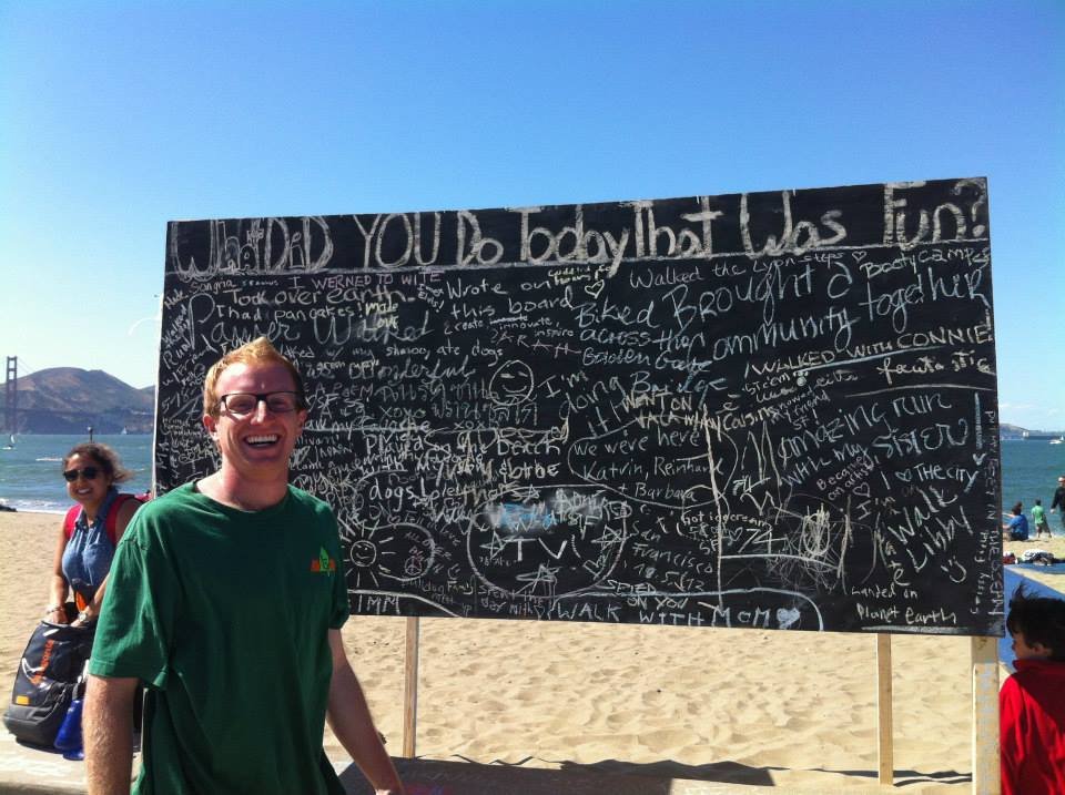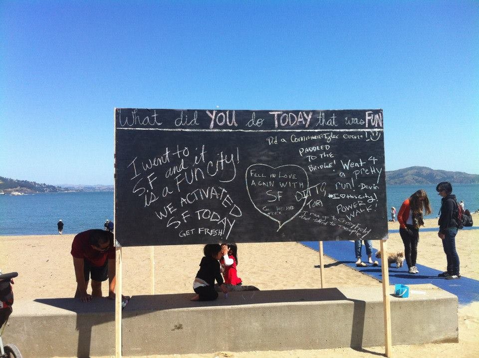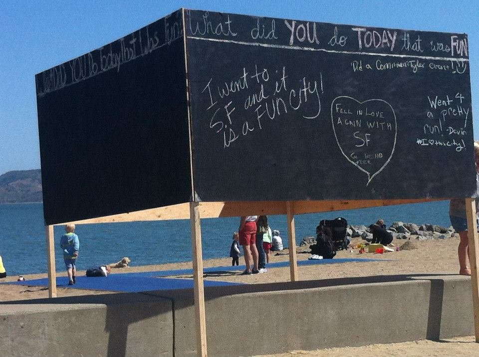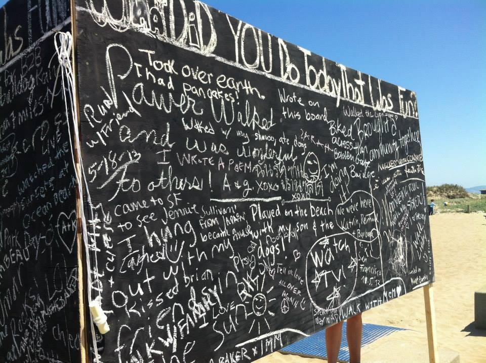 Following the footsteps of the “before I die” wall in New Orleans, CommuniTyler San Francisco made public art spaces out of unused walls. Volunteers erected a board at a public beach that allowed passersby to answer the question “what did you do that was FUN today” in chalk. Within the first half hour, 50 people had written on the board! The volume and creativity of responses on the board, as evident in the slideshow above, is truly inspirational.